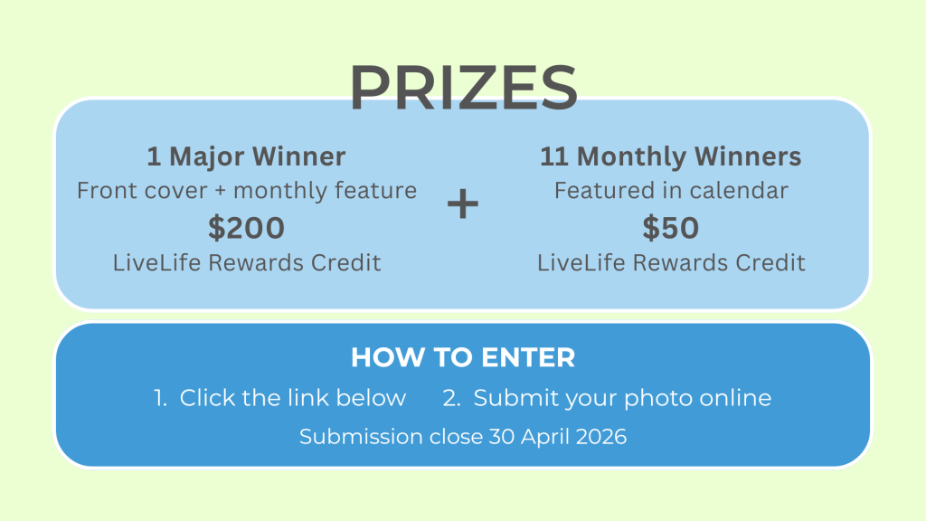 Selected photos will be featured in the 2027 LiveLife Calendar, seen by thousands of people across LiveLife Pharmacy stores.